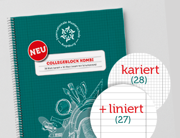 Zwei Lineaturen in einem Block – liniert (27) & kariert (28). Weniger tragen, mehr Ordnung mit individuellem Cover!